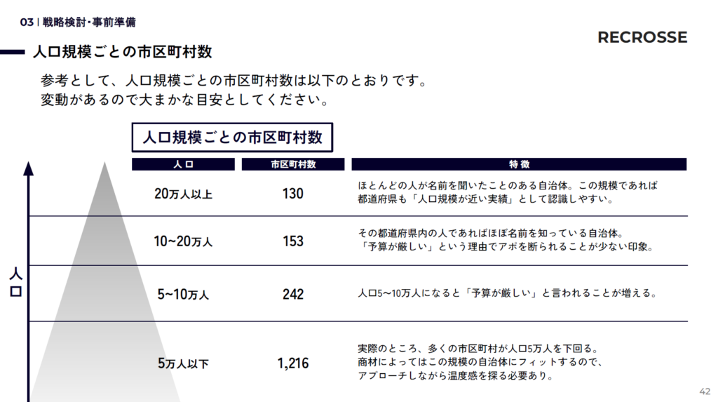 導入実績は商談でいちばん聞かれる内容ですので、ぜひ先回りして情報提供できると自治体側も喜ぶはずです。